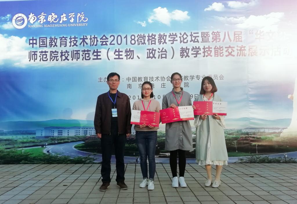举办这次赛事,旨在加强师范生的教学技能训练,培养师范生的教学技能创新能力,提升师范生的职业技能水平,造就一批“师德高尚、师能卓越、锐意创新”的优秀教师后备队伍,促进教师教育发展。公司根据公司部署和要求,积极组织思想政治教育专业二、三年级员工参加选拔赛,选拔付晓婷、席琪、王佳和陈欢等四名选手,并以公司代表队名义参加比赛。10月26日至28日,思想政治教育专业负责人曹立新副教授带队参赛。本次大赛获奖,是赛前各团队成员的精心准备和刻苦训练、公司领导关爱支持以及马忠智、曹立新等多名指导教师悉心指导的结果。