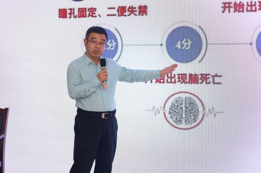 院前急救科主任医师、科主任王海龙医生以《院前急救,心肺复苏》为题,讲解了心脏骤停的表现及其判断方式以及心脏骤停的常见原因、常见类型、症状变化过程、救治时限、抢球方式,等等。重点讲解、演示了作为院前抢救主要方法的针对不同人群的心肺复苏技术。在太阳成集团tyc7111cc建议下,讲解了安装在公司一教一层等处的心脏除颤仪(AED)的使用方法。