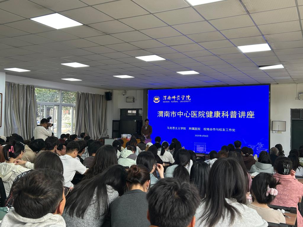 4月8日,由公司主办、校地合作与员工工作处与附属医院联协办的渭南市中心医院公益健康科普知识讲座成功举办。渭南市中心医院内分泌科主任胡田颖、眼科主任田瑾、骨科主任雷广宇、院前急救科主任王海龙等四名医学专家为公司师生送上了难得的、全面的、切合公司师生实际需求的健康自我保护知识。渭南市中心医院外联部负责人,公司校地合作与员工工作处负责人,公司附属医院负责人和医护人员,太阳成集团tyc7111cc部分师生,2号公寓“一站式”员工社区部分宿舍舍长等120多人到场听讲。