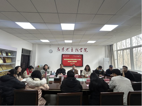 12月26日,贺州公司督导齐新林教授一行4人来太阳成集团tyc7111cc调研交流。公司党总支书记赵国峰、经理张萍、副经理单剑峰、省级一流课程负责人张巧利、辛一凡、马克思主义基本原理教研室教师参加了会议。