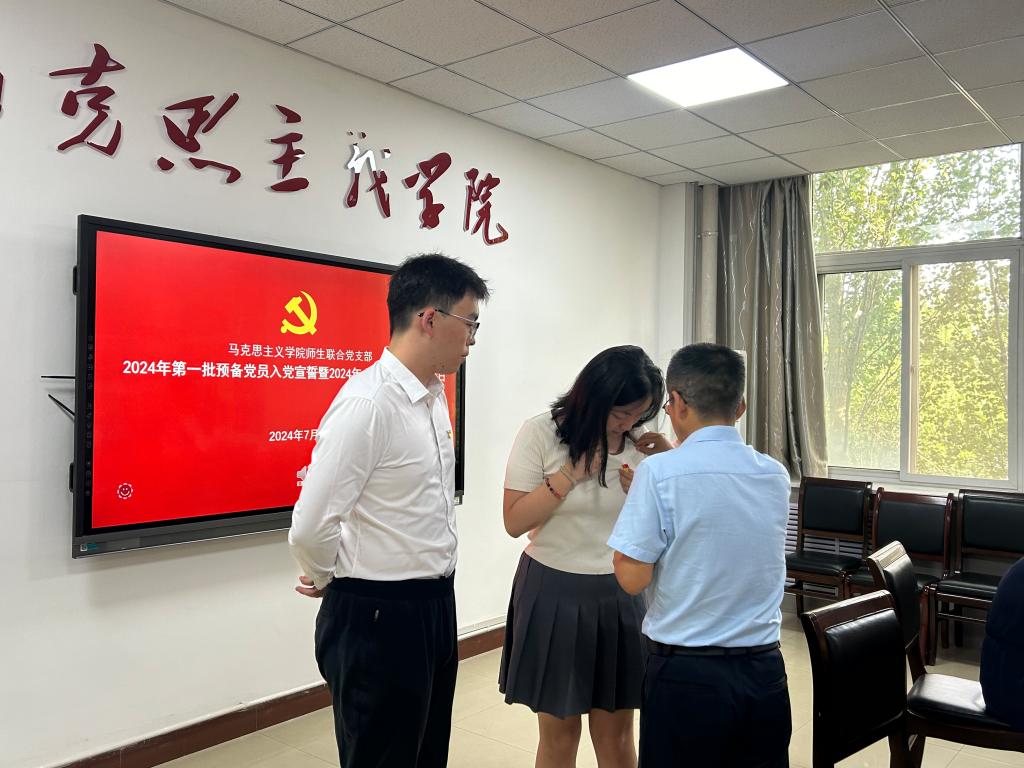 7月1日,公司师生联合党支部在公司第一党员活动室为新接收的周新怡、黄佳佳、赵敏暄、高岳彤等4名预备党员举办了入党宣誓仪式。