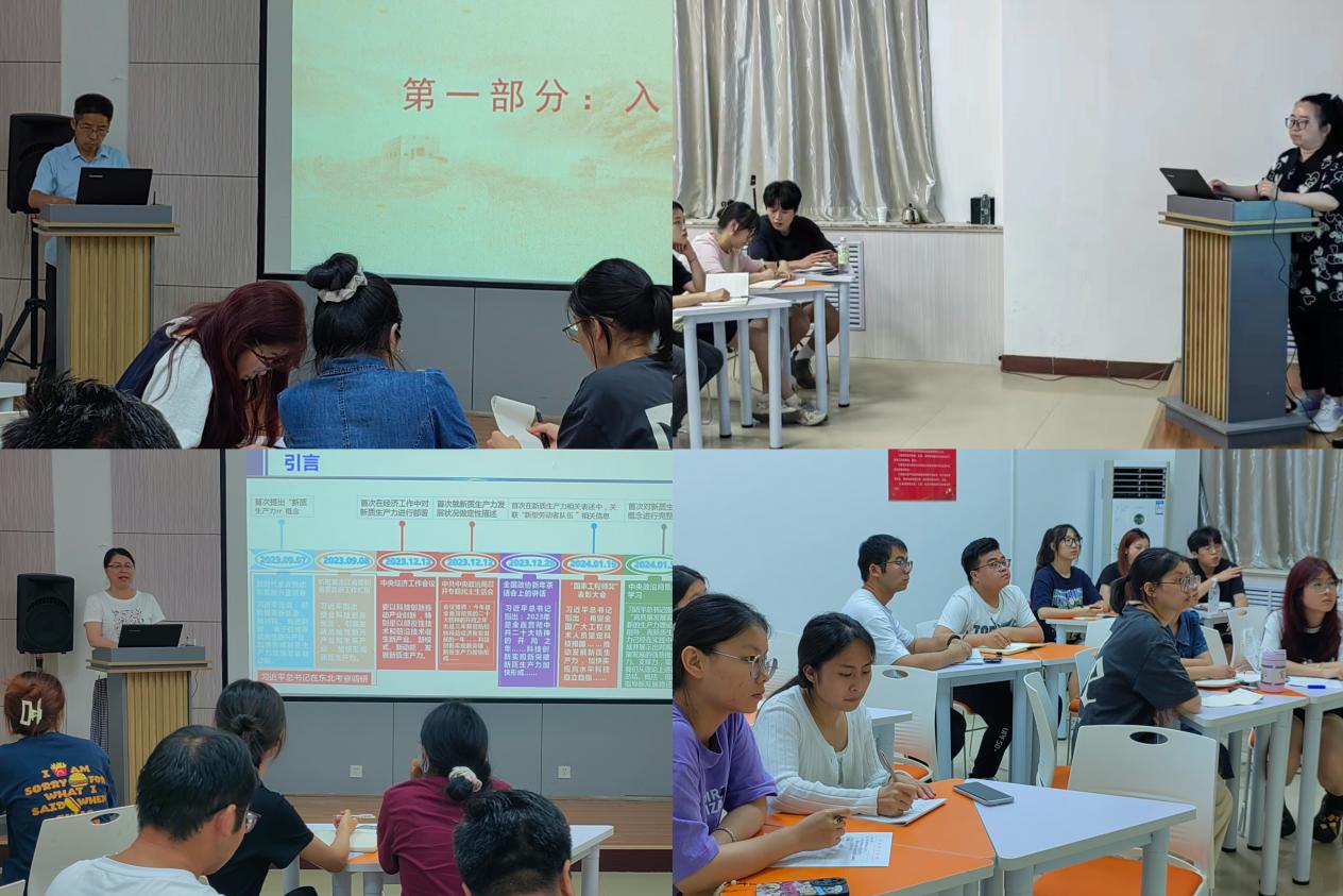 5月21日至23日,培训班为入党积极分子开设了三场辅导报告。党总支书记赵国峰、经理(党总支副书记)张萍、专业课教师党支部书记张江婷分别作了题为《入党的条件与程序》、《深刻认识和把握新质生产力推进我国经济高质量发展》和《入党积极分子如何成为一名合格党员》的辅导报告。