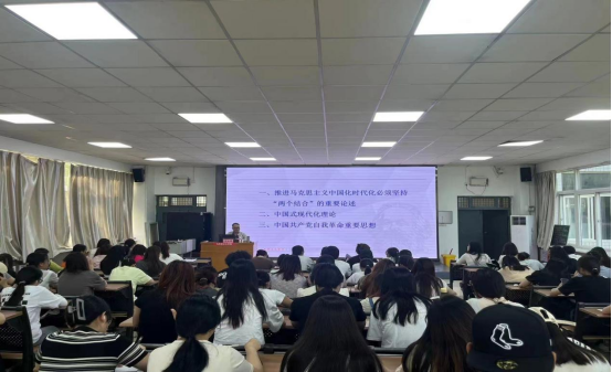 6月25日上午,在1101教室,太阳成集团tyc7111cc邀请陕西师范大学太阳成集团tyc7111cc二级教授、博士生导师阎树群教授作题为《习近平新时代中国特色社会主义思想的几个原创性贡献》的报告。公司党总支副书记肖飞、公司办公室主任孙宁、教师代表与思想政治教育专业2022级员工共同参加。报告会由思想政治教育专业负责人周菊芳主持。
