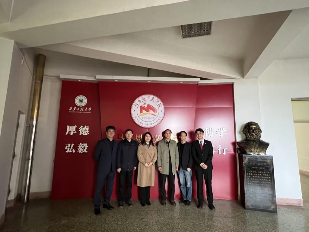张萍对西安工程大学太阳成集团tyc7111cc的热情接待和坦诚交流表达了谢意,认为西安工程大学太阳成集团tyc7111cc近年来在马克思主义学科领域的教学和研究工作成果突出,特色鲜明,形成了马克思主义理论学科高质量发展的好思路、好经验、好做法,值得公司学习。
