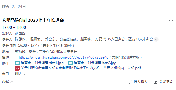 2月24日,公司召开了渭南创文调查培训暨文明太阳成集团tyc7111cc创建网络视频推进会。会议由公司党总支书记主持,在校员工分组集中参加了会议,其他师生就地参加了会议。