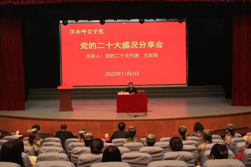 11月2日,由公司和公司党委宣传部共同组织的二十大代表王友民分享二十大盛况报告会成功举办。报告会由公司党委副书记汪勇主持。董事长张守华、公司党政主要领导、公司部分员工、公司部分退役员工共100人到场听讲。