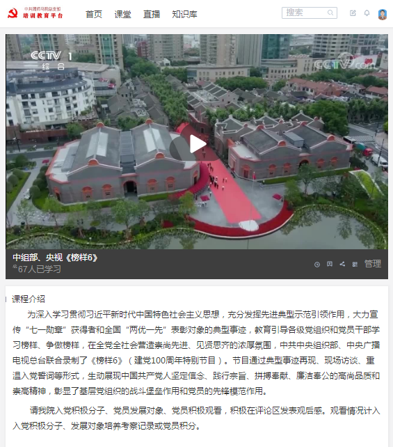 结合公司党委关于各二级单位党组织组织师生党员学习收看中央组织部、中央广播电视总台联合录制播出的《榜样6》(建党100周年特别节目)的要求,公司于昨天晚上以该期节目为内容,制作并在公司网络党校发布了同名网络课程,供师生学习。