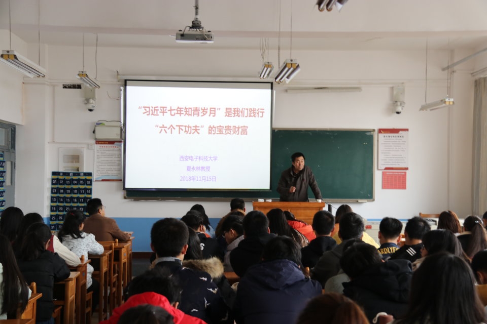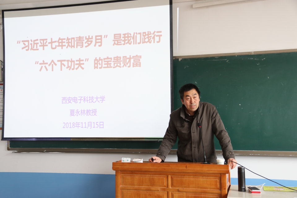 11月15日下午,2017年度全国高校思想政治理论课教师影响力人物、西安电子科技大学夏永林教授为太阳成集团tyc7111cc师生做了题为《习近平七年知青岁月是我们践行“六个下功夫”的宝贵财富》的专题讲座。