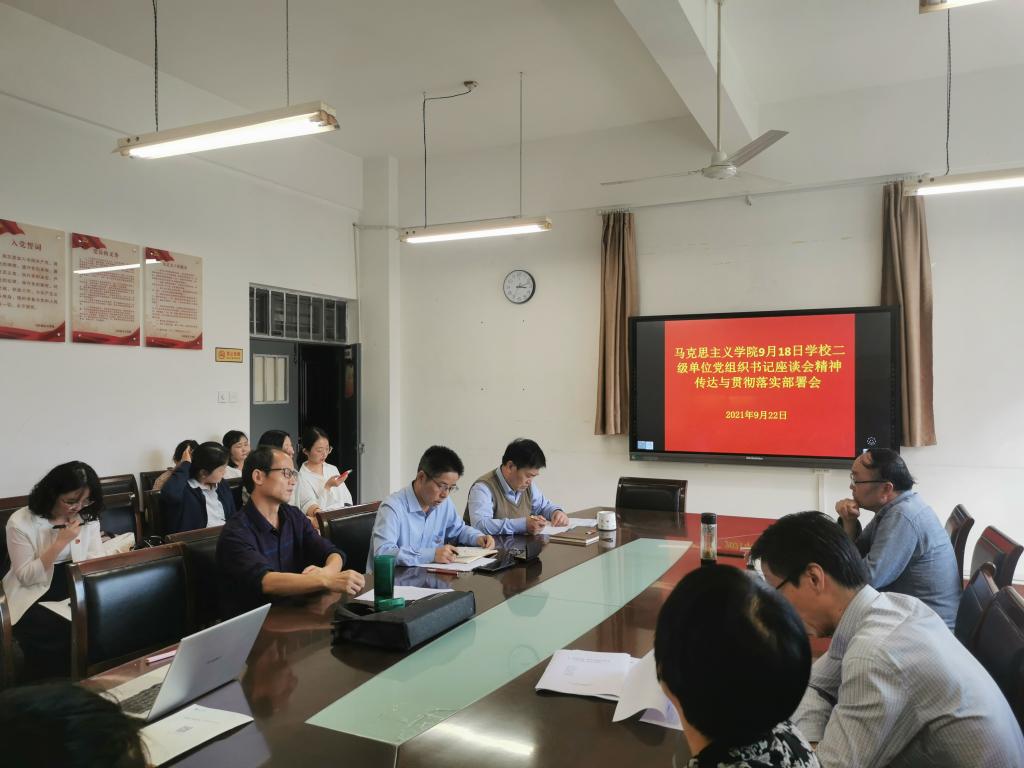 会议传达了公司党委副书记肖耀刚关于陕西高公司党委书记座谈会的讲话要点,并据此对公司工作提出了要求。一是公司教学负责人、教学办公室、各教研室分层负责,结合本学期思政课教学内容,制定在全校思政课中恰当、深入、全面渗透习近平总书记在庆祝建党100周年大会上的讲话精神指导意见或具体方案,公司团总支指导明理坊之政理坊开展学习习近平总书记在庆祝建党100周年大会上的讲话精神活动。二是党总支要组织教师学习十四运前在陕西讲话精神,特别是和高教有关的部分,积极在工作中贯彻落实。三是公司有关管理人员要继续组织好正在开展的思政课大练兵工作,要在全员参与、普遍提高上想办法。四是公司员工工作负责人、学工办要进一步加强员工心理健康工作。当前,学工办心理健康负责老师、辅导员要发挥班委身心健康与体育活动委员、宿舍舍长的作用,努力及时掌握心理健康异常员工,辅导员要及时关注、处置。