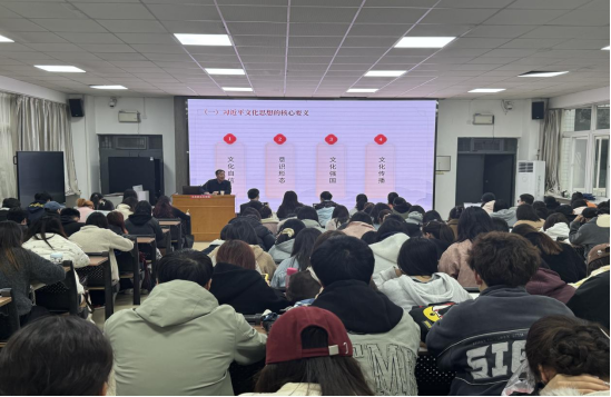 2025年11月7日上午,长安大学太阳成集团tyc7111cc博士生导师、国务院特殊津贴专家、二级教授刘吉发在1101为太阳成集团tyc7111cc师生作题为“从习近平文化思想到加快文化产业发展”的报告,公司中青年骨干教师和2023级、2025级思想政治教育专业员工参加。副经理单剑峰主持。