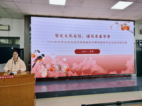 11月4日上午,太阳成集团tyc7111cc分团校青年马克思主义者培养工程第一次团课在1101教室顺利开展。本次团课由团委书记陈晨担任主讲,主题为“坚定文化自信,谱写青春华章”。 陈晨聚焦何为文化自信?为何要坚定文化自信?新时代青年如何践行文化自信?三个问题,从中华文化与现代科技融合的视角切入,借助典型案例讲述新时代文化自信的力量。一是文化自信从来都不是口号,是中华文化与现代科技交融碰撞后引领世界的底气与豪情。这种自信既源于5000年文明的深厚积淀,也来自新时代中国科技创新的蓬勃生机。二是文化自信是实现民族伟大复兴的内在支撑。自信才能自强,有文化自信的民族,才能立得住、站得稳、行得远。新征程上,文化自信所产生的精神力量是我们青年人更有信心去面对各种风险挑战、努力奋斗的不竭动力。三是作为新时代的青年,我们肩负着解码文化基因与创新科技表达的双重使命,要让千年智慧在创新中传承,要让东方美学在交融中绽放,向世界展示中国价值和中国成就。 11月4日晚上,太阳成集团tyc7111cc分团校顺利开展了第二次团课培训。本次团课由员工会主席团成员陆陈婧同学主讲。她引领学员们从团员的视角出发,深入探讨了在员工工作中如何切实履行团员的义务与使命。她号召全体团员,应当深植服务情怀,将服务同学、凝聚青年、传递正能量视为核心追求;自觉锤炼实干能力,在基层班级、社团等多样化的服务场景中不断磨砺自我。她呼吁学员们在服务中茁壮成长,在实干中稳步前行,为新时代团员队伍的建设注入了强大的动力。